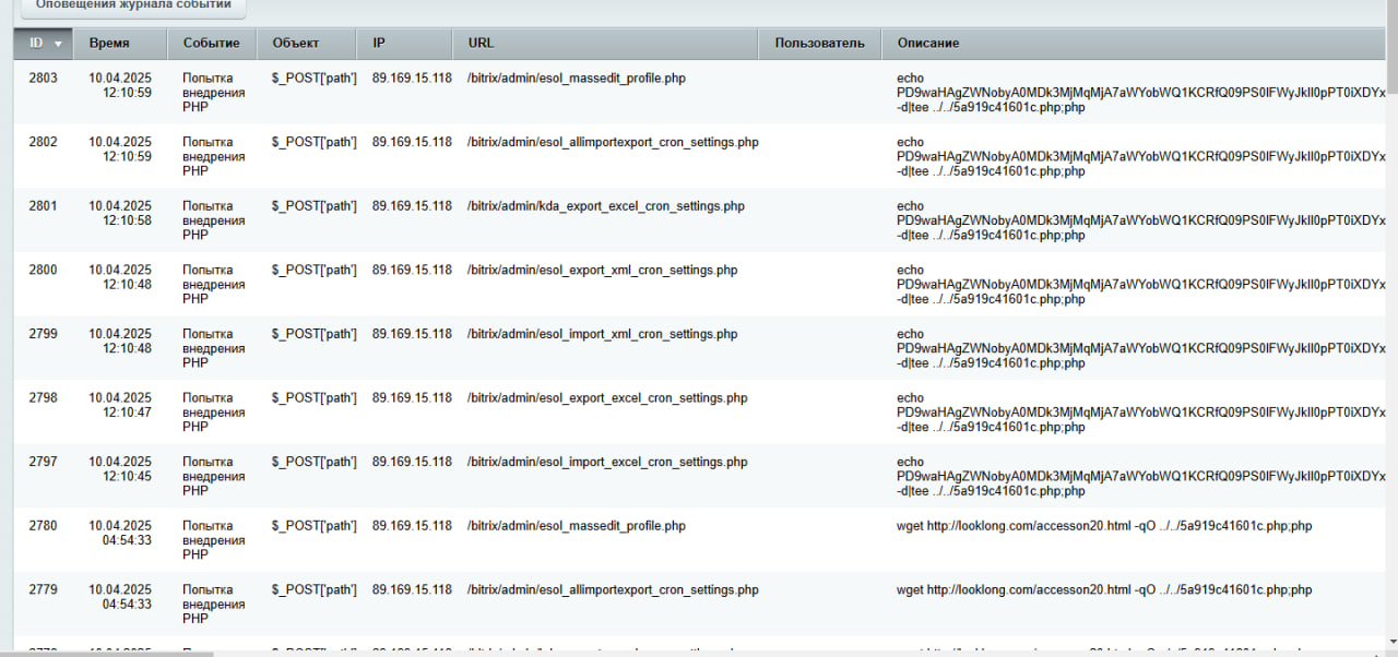 Пожалуйста, следите за безопасностью своих проектов, чтобы не стать жертвами хакеров. Центр информационной безопасности и мониторинга инцидентов компании «1С-Битрикс» оперативно сообщает о всех известных инцидентах и найденных уязвимостях на сайте, а также по e-mail. В рамках проекта «Безопасные интеграции» компания также освещает инциденты, связанные с уязвимостями решений, созданных внешними компаниями-разработчиками.