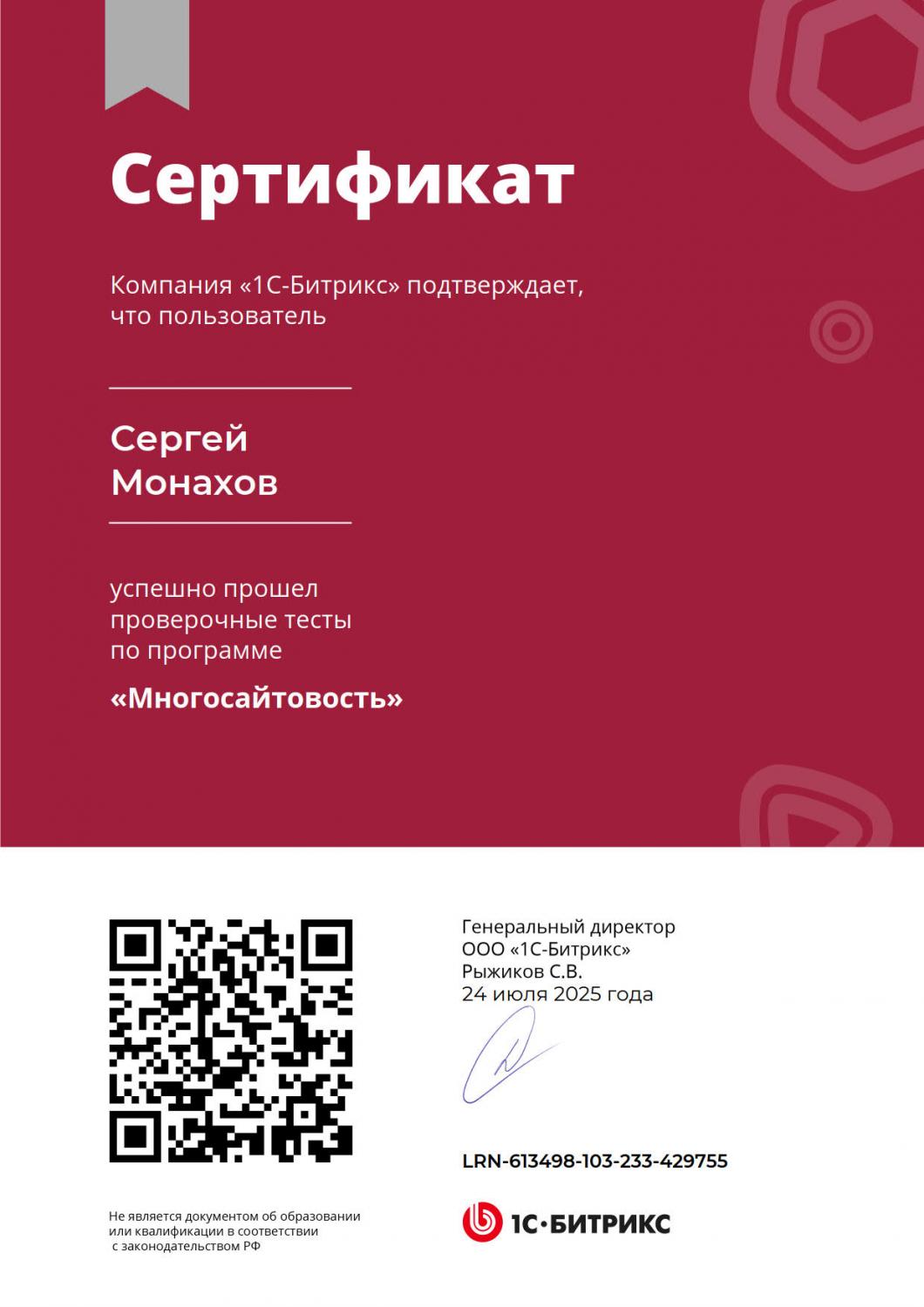 Сертификаты 1С-БИТРИКС
