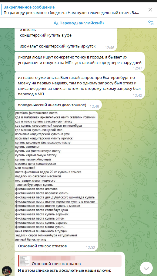 o анализ и обновление списка минус‑слов и ключевых фраз;